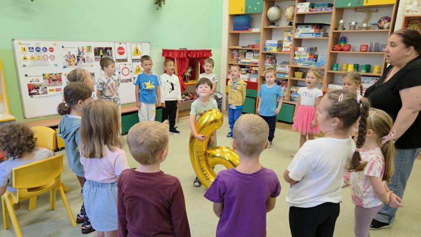 W miesiącu wrześniu urodziny w grupie Żyrafek obchodzi nasz kolega Adaś. Składamy mu najserdeczniejsze życzenia, spełnienia dziecięcych marzeń. Koledzy i koleżanki dziękują za słodką niespodziankę. Sto lat dla Adasia!