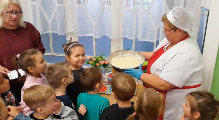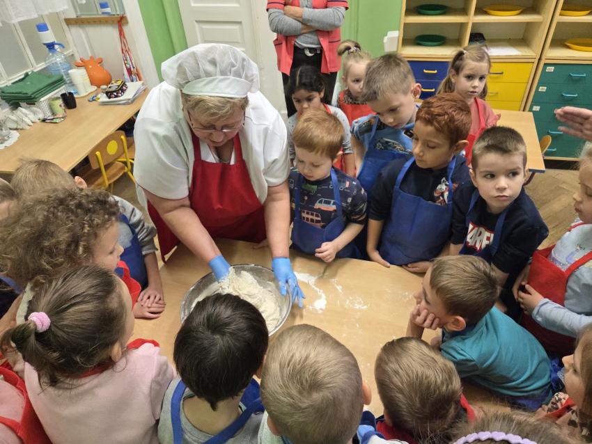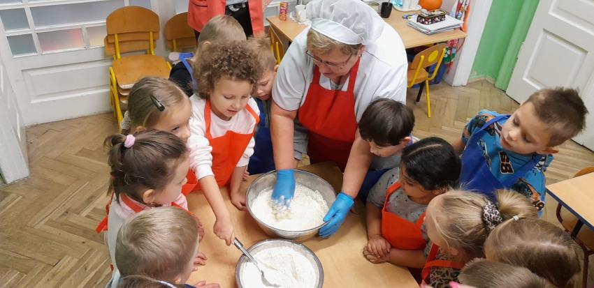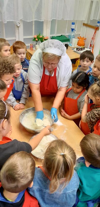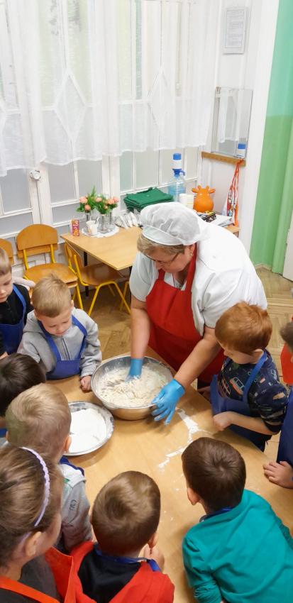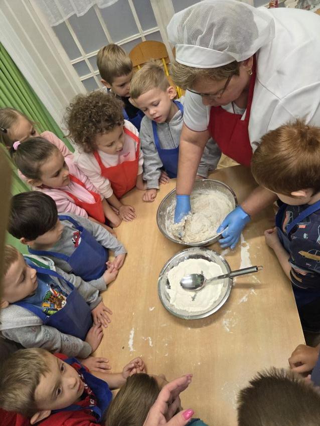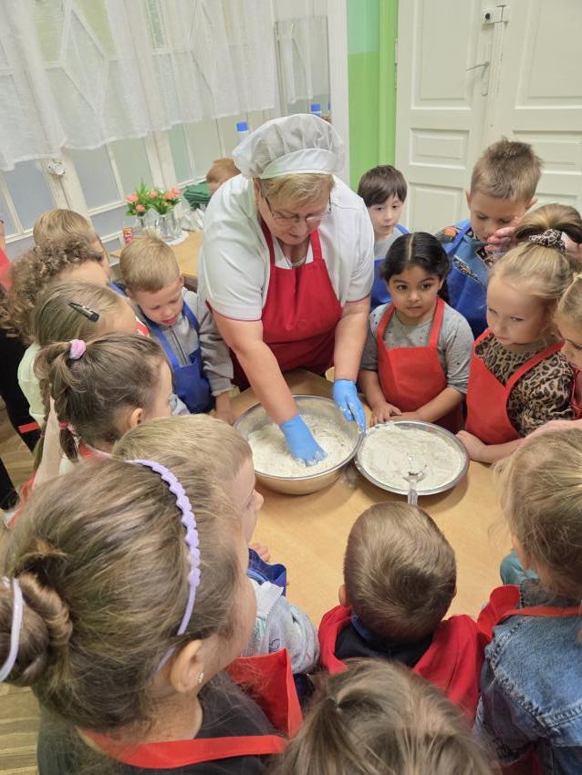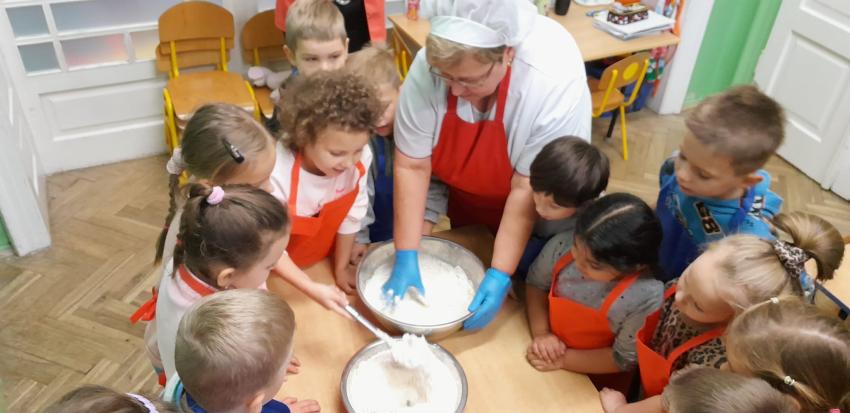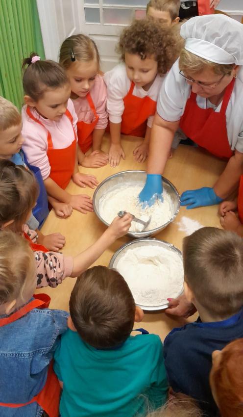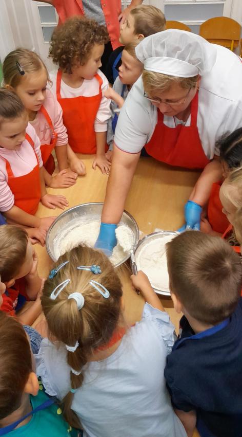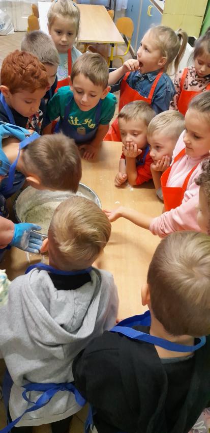 Ten dzień to wspaniała okazja, aby przybliżyć dzieciom proces pieczenia chleba. W ramach realizacji ogólnopolskiego programu " Skąd się biorą produkty ekologiczne" dzieci z oddziału III piekły dzisiaj chleb. Poznały etapy powstawania chleba - od uprawy zbóż, przez proces mielenia ziarna na mąkę, aż po pieczenie bochenków. Po wykonaniu zadania degustowaliśmy nasze wypieki, oraz częstowaliśmy rodziców smakołykami.