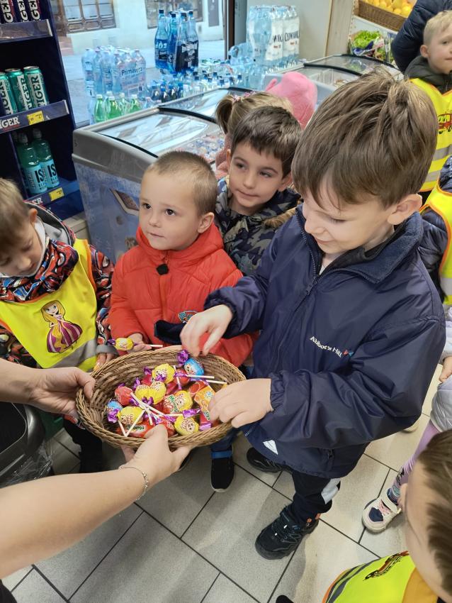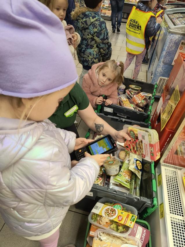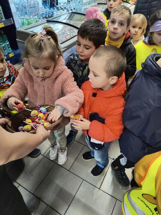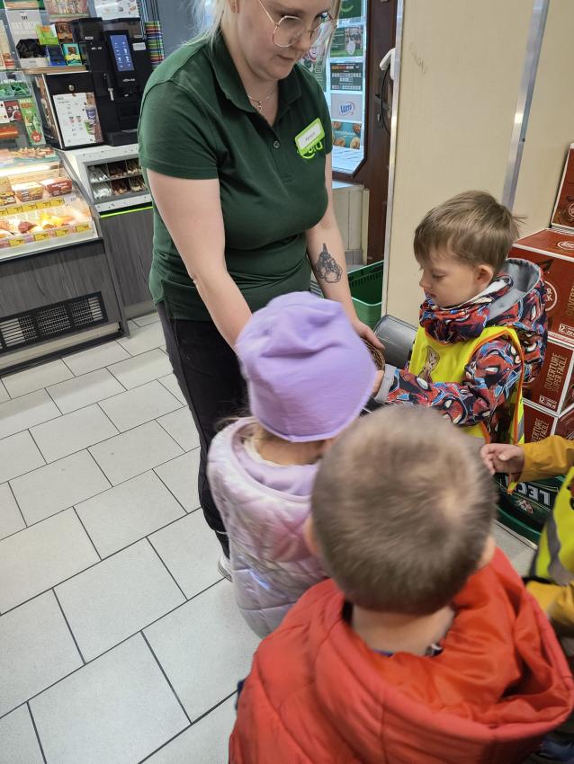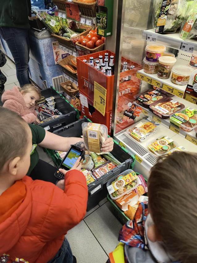 17.10 dzieci z oddziału II udały się z wizytą do sklepu. Podczas tego spotkania poznały pracę i zawód sprzedawcy. Mogli spróbować swoich sił w skanowaniu oraz rozkładaniu towarów na półkach. Dowiedzieli się jak wygląda droga produktów spożywczych zanim trafią one na sklepowe półki.