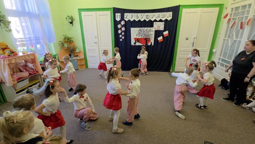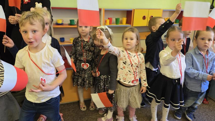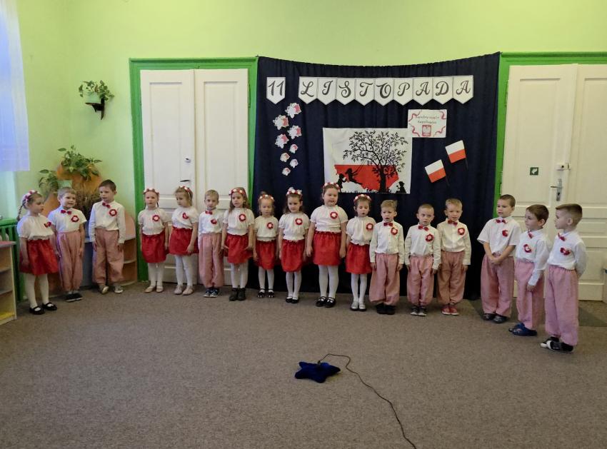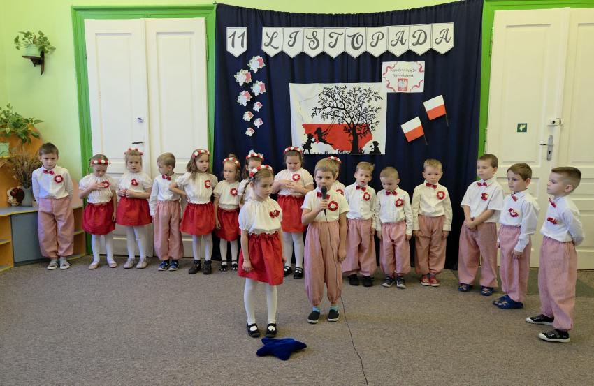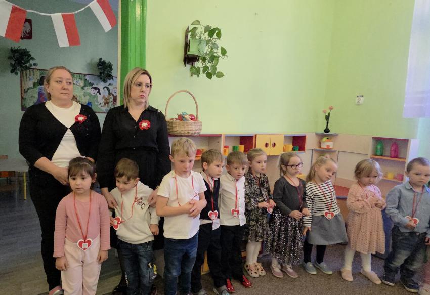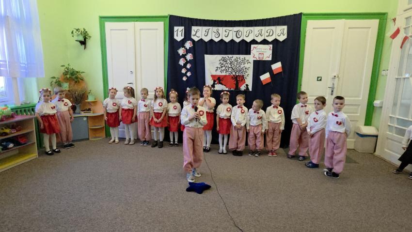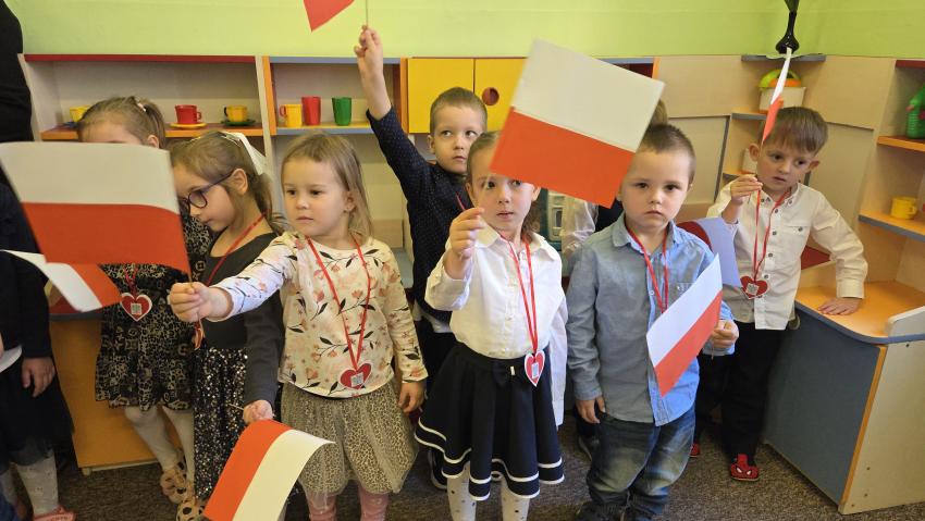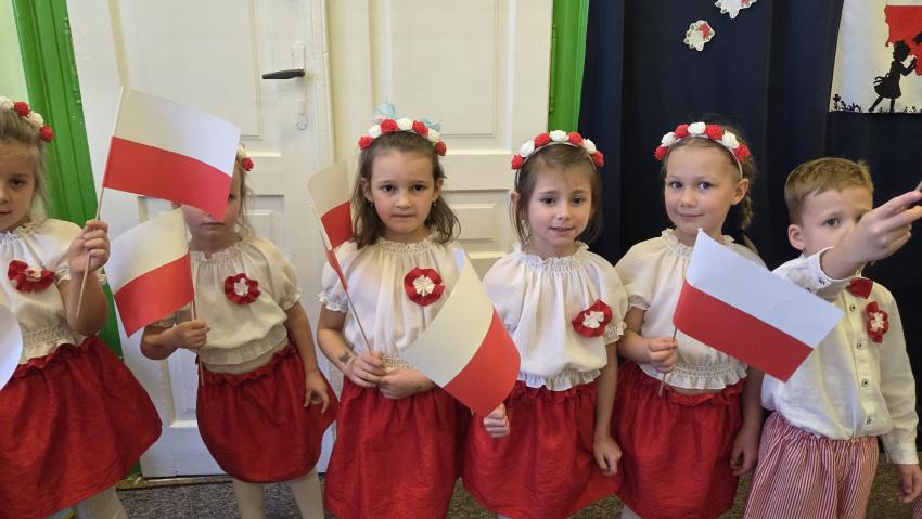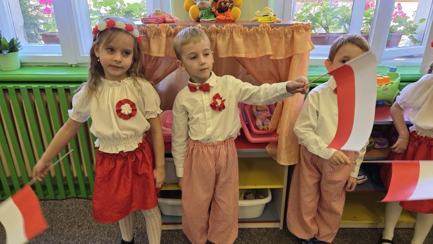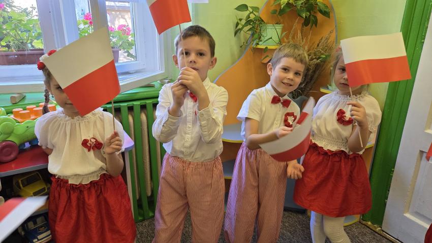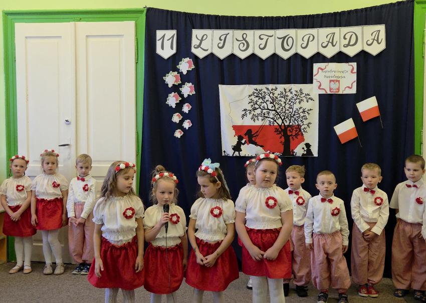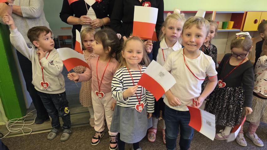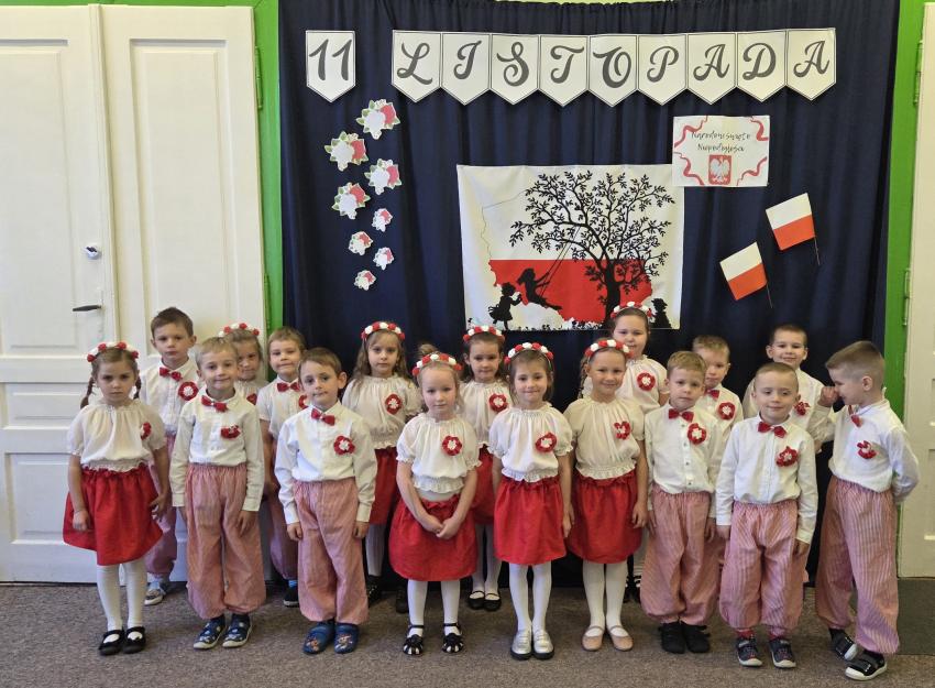 7.11.2025 Z radością i dumą w sercu obchodziliśmy Święto Niepodległości Polski 11 Listopada. Ubrane na galowo przedszkolaki uroczyście świętowały ten wyjątkowy dzień. Włączając się do akcji Szkoła do hymnu o godzinie 11.11 wszyscy odśpiewaliśmy hymn Polski " Mazurek Dąbrowskiego". Dzieci z oddziału III Żyrafki wystąpiły z programem artystycznym upiększając naszą uroczystość. Głównym celem spotkania było kształtowanie miłości i przywiązania do kraju ojczystego, jego kultury i tradycji oraz poznanie symboli narodowych naszego kraju. Dzięki udziałowi w tego typu uroczystościach przedszkolaki od najmłodszych lat uczą się patriotyzmu, kształtują pozytywne postawy i uczucia patriotyczne. Po zakończonej uroczystości przedszkolaki udały się na Stary Cmentarz, oraz przed Grób Nieznanego Żołnierza, aby zapalić znicze i oddać hołd tym , którzy walczyli za naszą Ojczyznę.