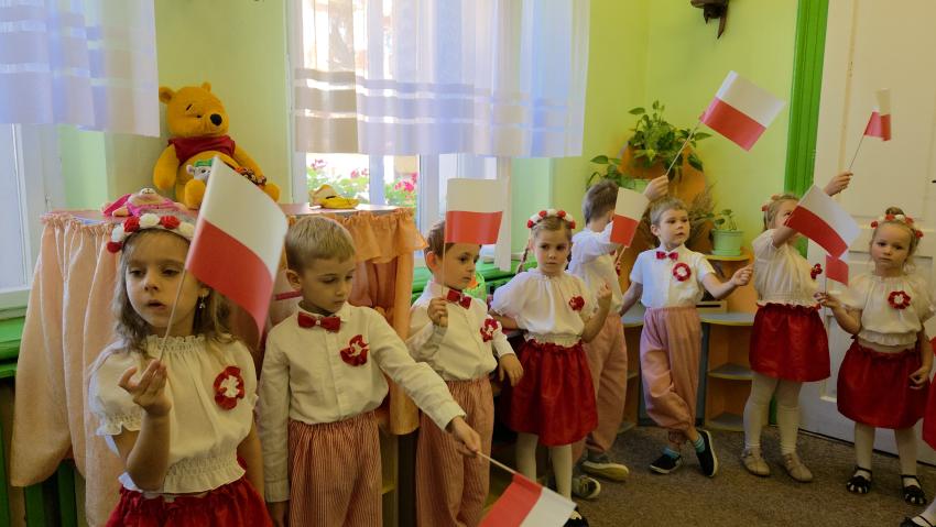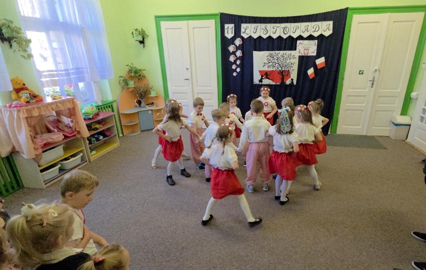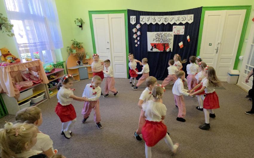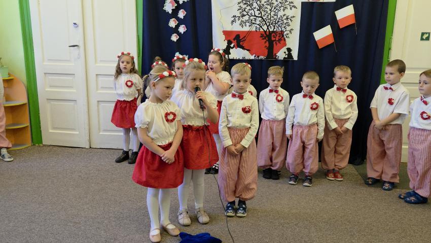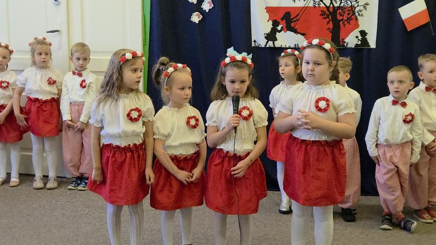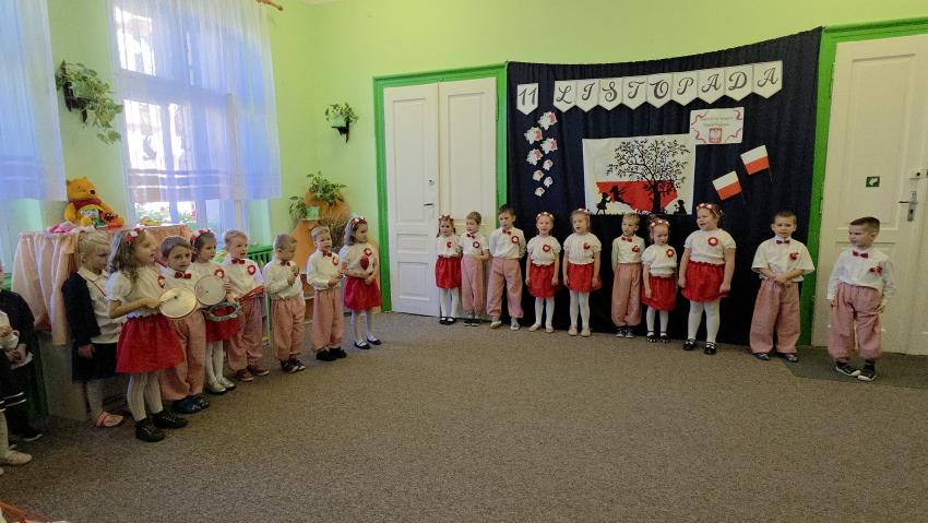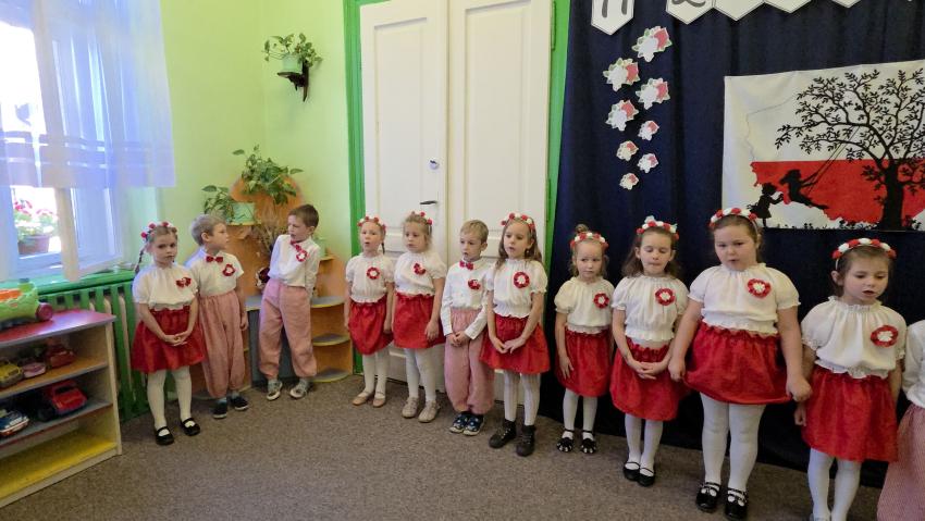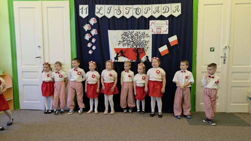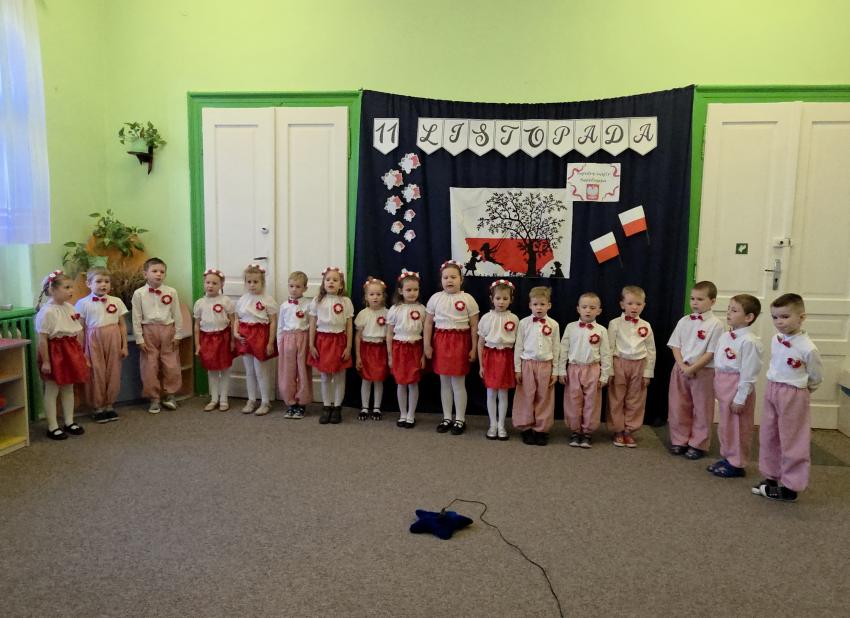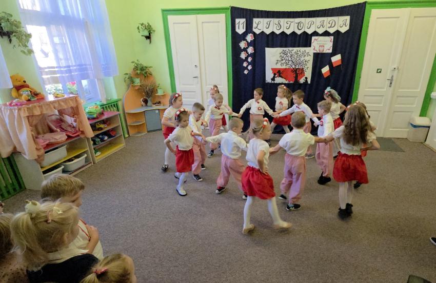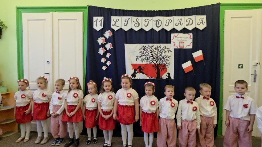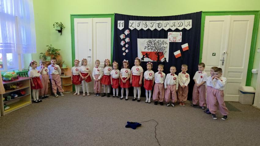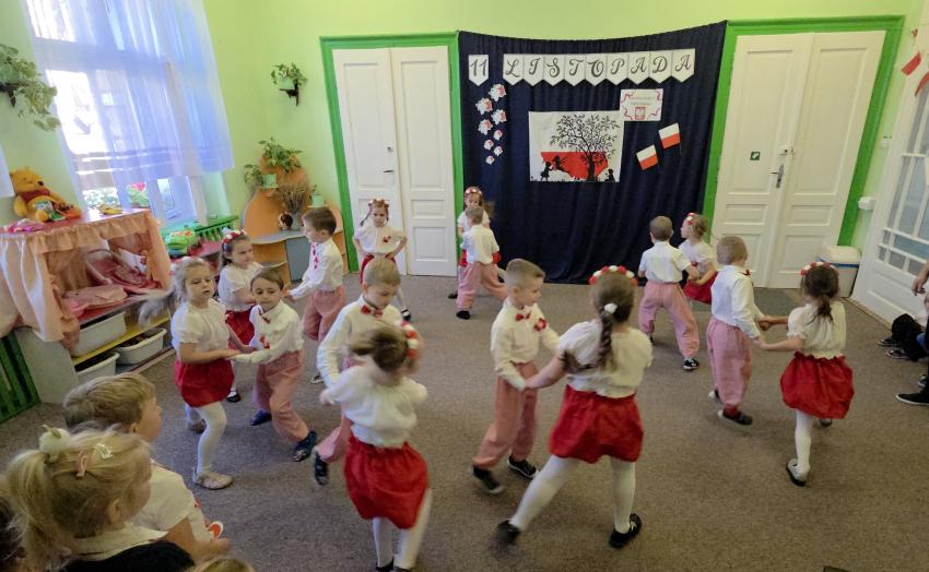 7.11.2025 Z radością i dumą w sercu obchodziliśmy Święto Niepodległości Polski 11 Listopada. Ubrane na galowo przedszkolaki uroczyście świętowały ten wyjątkowy dzień. Włączając się do akcji Szkoła do hymnu o godzinie 11.11 wszyscy odśpiewaliśmy hymn Polski " Mazurek Dąbrowskiego". Dzieci z oddziału III Żyrafki wystąpiły z programem artystycznym upiększając naszą uroczystość. Głównym celem spotkania było kształtowanie miłości i przywiązania do kraju ojczystego, jego kultury i tradycji oraz poznanie symboli narodowych naszego kraju. Dzięki udziałowi w tego typu uroczystościach przedszkolaki od najmłodszych lat uczą się patriotyzmu, kształtują pozytywne postawy i uczucia patriotyczne. Po zakończonej uroczystości przedszkolaki udały się na Stary Cmentarz, oraz przed Grób Nieznanego Żołnierza, aby zapalić znicze i oddać hołd tym , którzy walczyli za naszą Ojczyznę.
