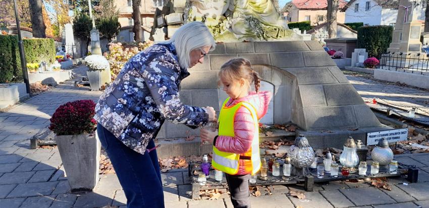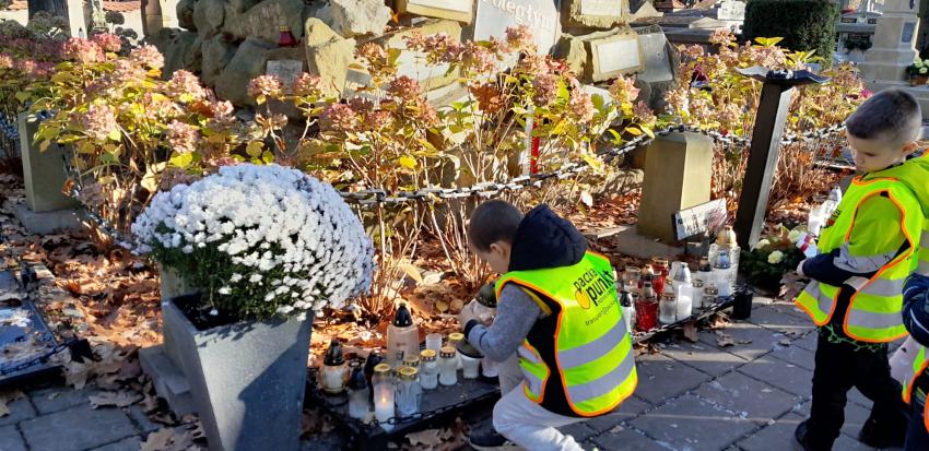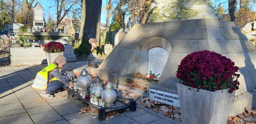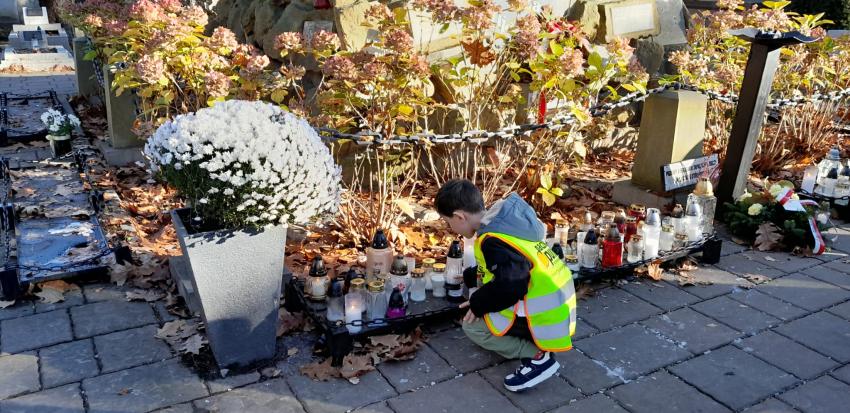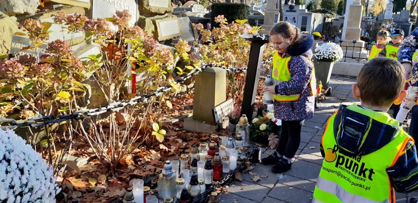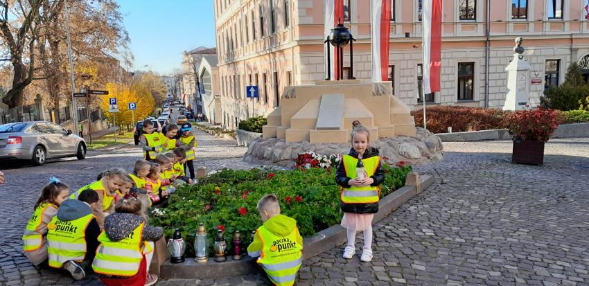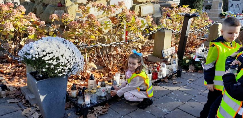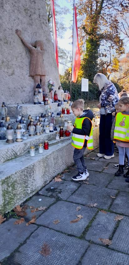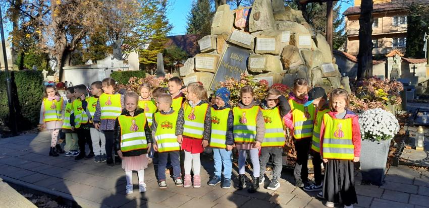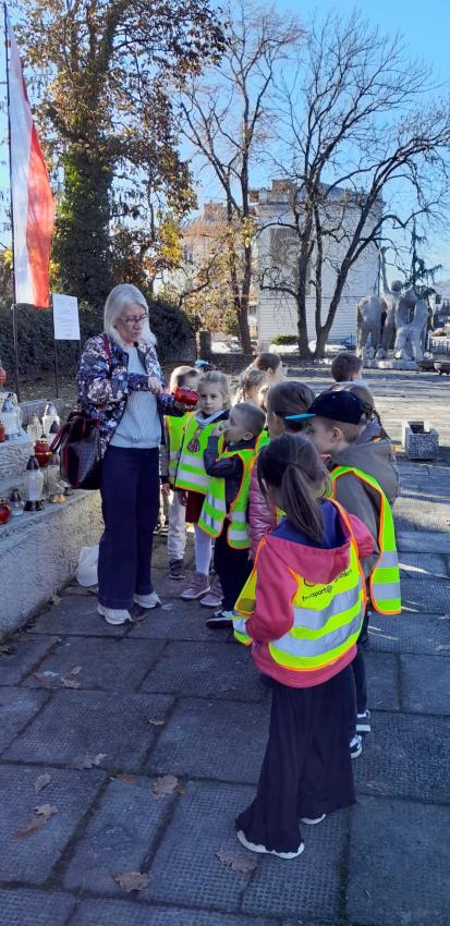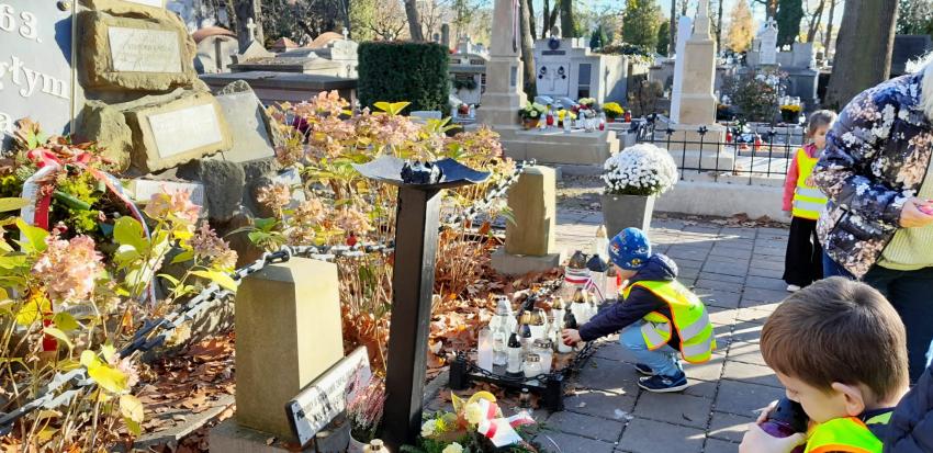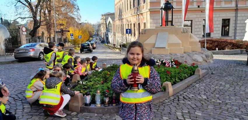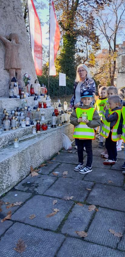 Grupa ,,Żyrafek " po akademii z okazji 11 Listopada udała się na Stary Cmentarz oraz pod Grób Nieznanego Żołnierza zaświecić znicze żołnierzom poległym za naszą wolność.