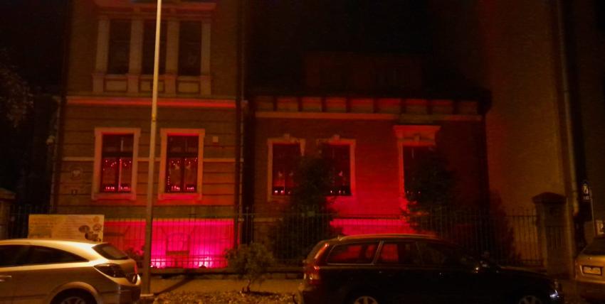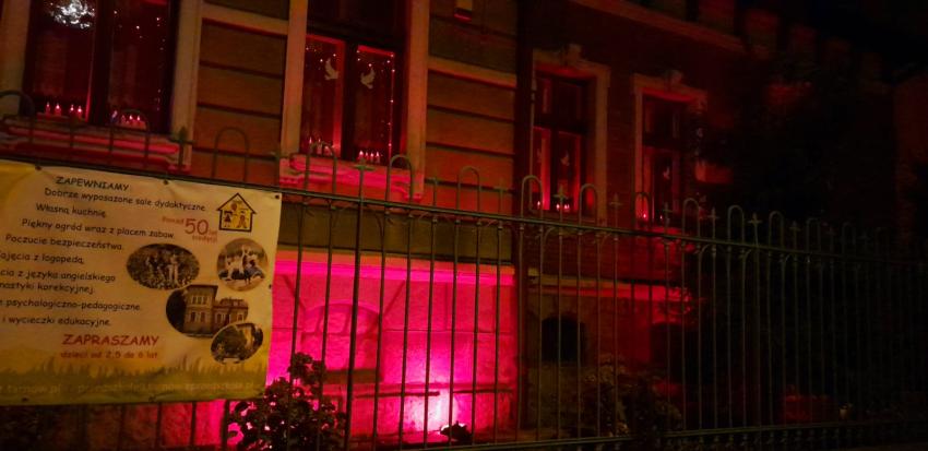 O godzinie 17.00 nasze przedszkole zostało oświetlone na kolor czerwony w ramach Kampanii Dzieciństwo bez Przemocy. Dobre dzieciństwo daje dziecku moc. Wspieramy dzieciństwo mocy bez przemocy.