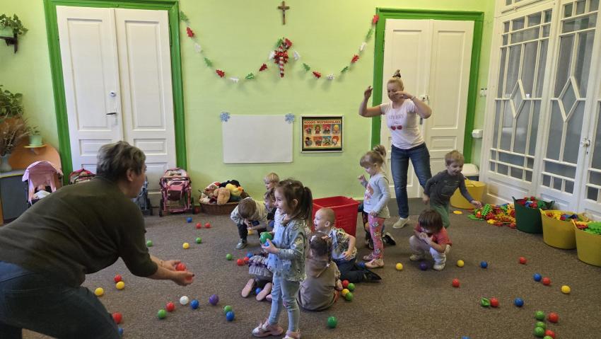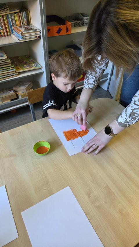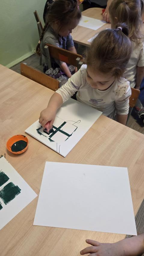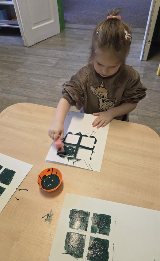 W dniu 02.12 (wtorek) odbyły się zajęcia koleżeńskie, które prowadziła pani Karolina Hałas. Były to zajęcia plastyczne o tematyce "Prezenty dla Świętego Mikołaja", podczas których dzieci poznały legendę o Świętym Mikołaju, dzieliły wyrazy na sylaby tupiąc, klaszcząc i jeżdżąc przy tym sa-nia-mi. Ćwiczyły celność wrzucając "prezenty do komina", a na koniec wykorzystując technikę stemplowania przedszkolaki wykonały piękne prezenty dla Świętego Mikołaja.