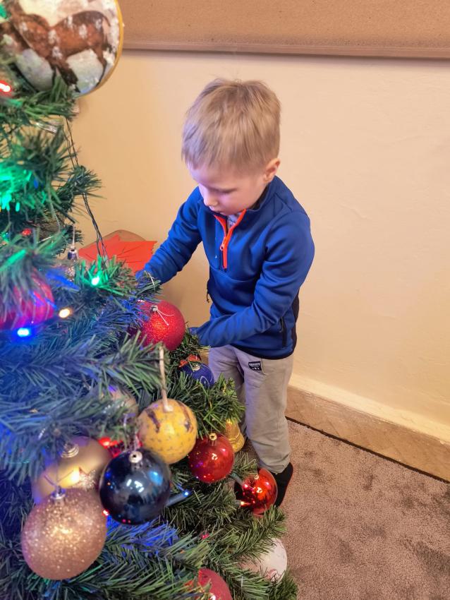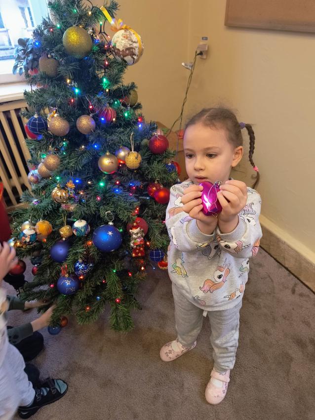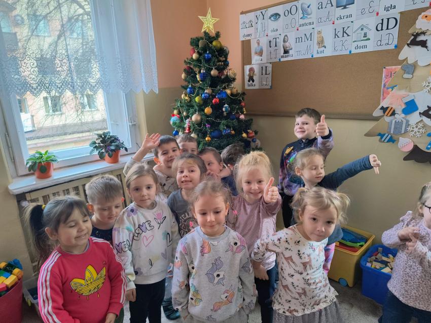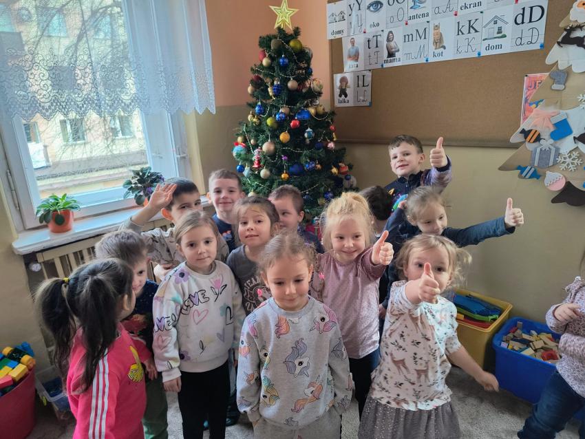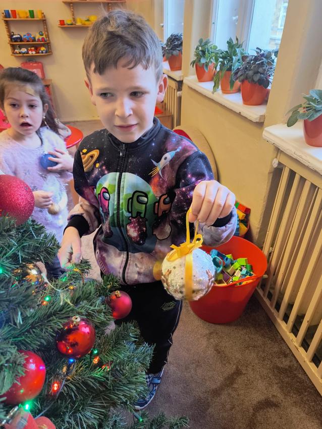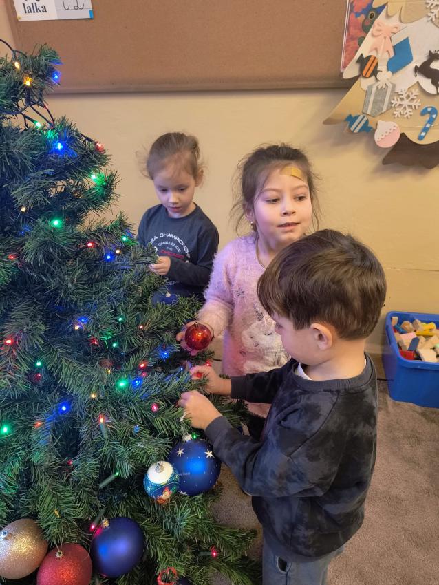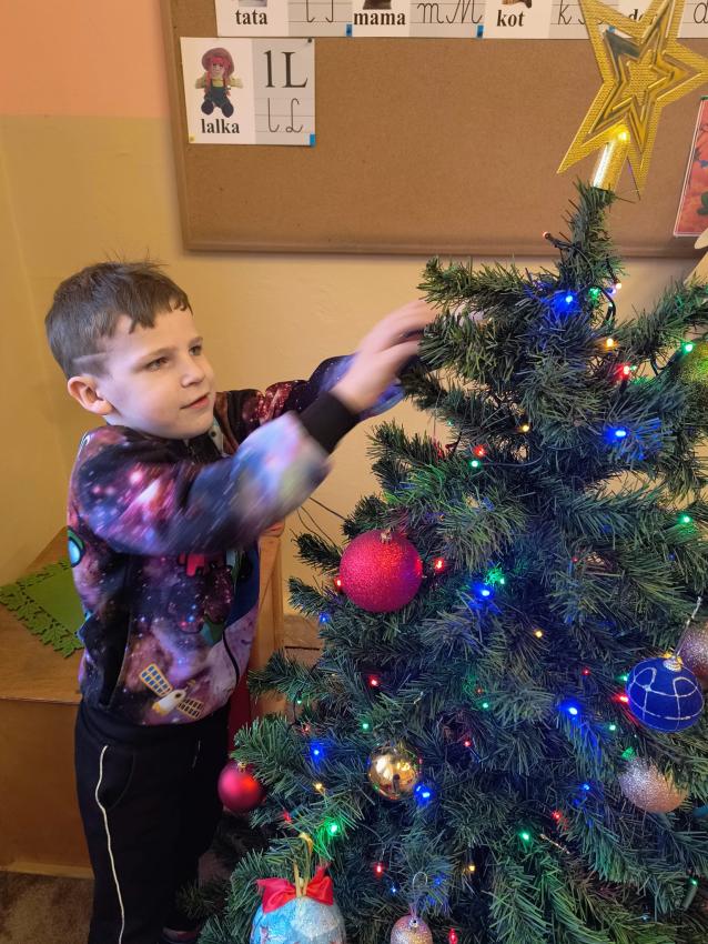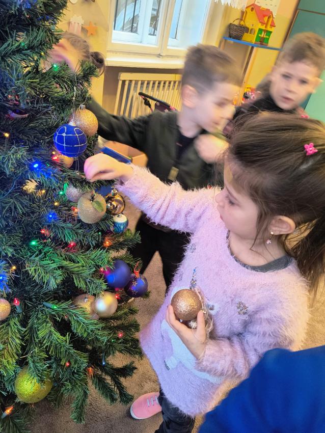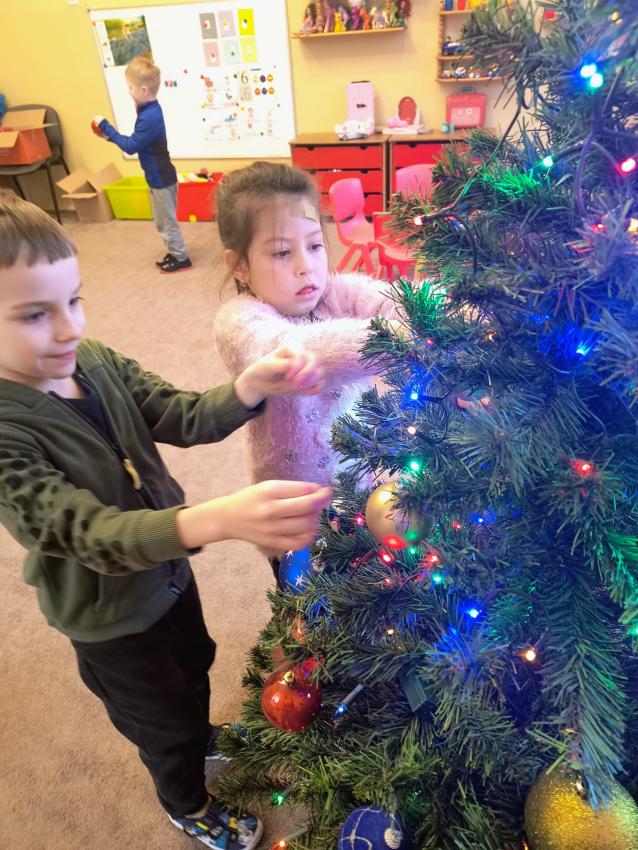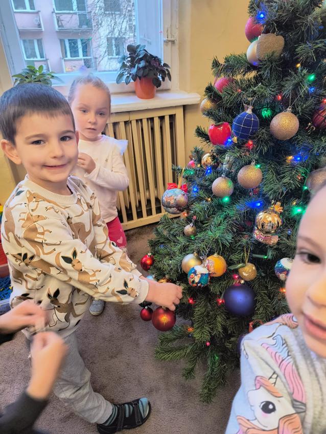 Dzieci z oddziału II w oczekiwaniu na Mikołaja wspólnie ubrały choinkę