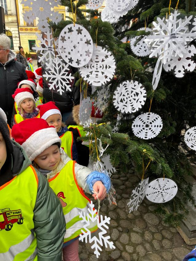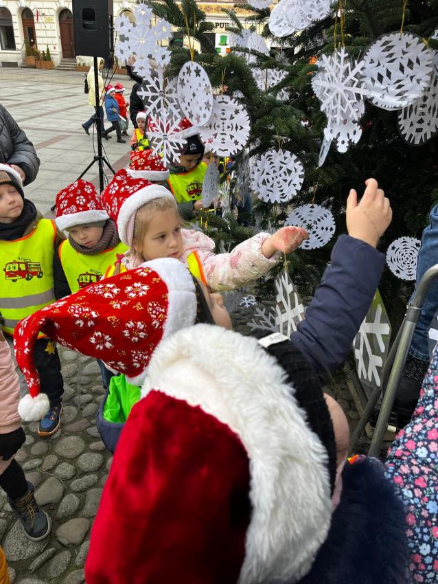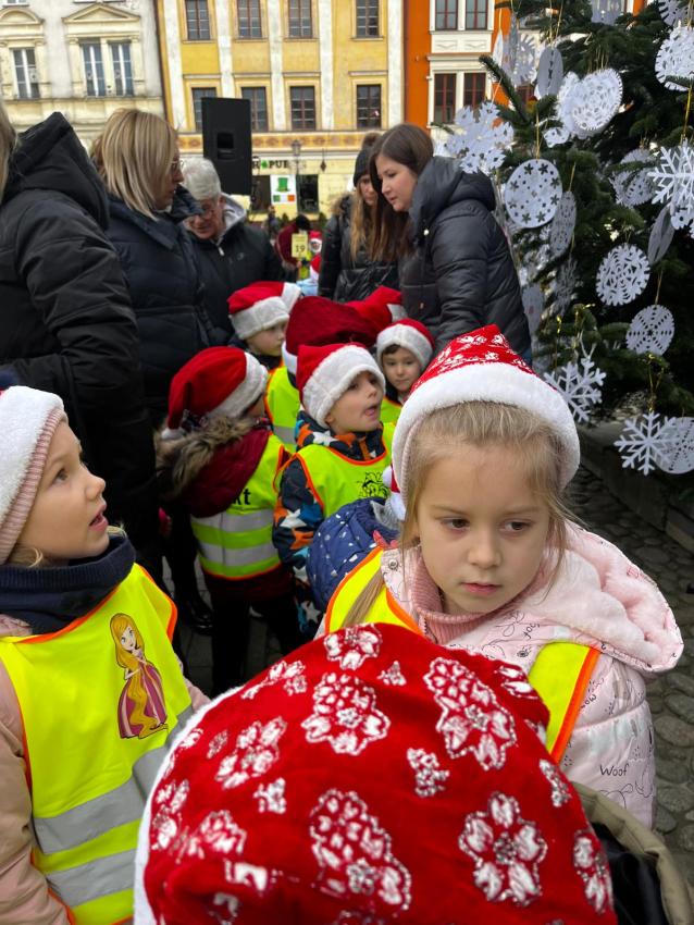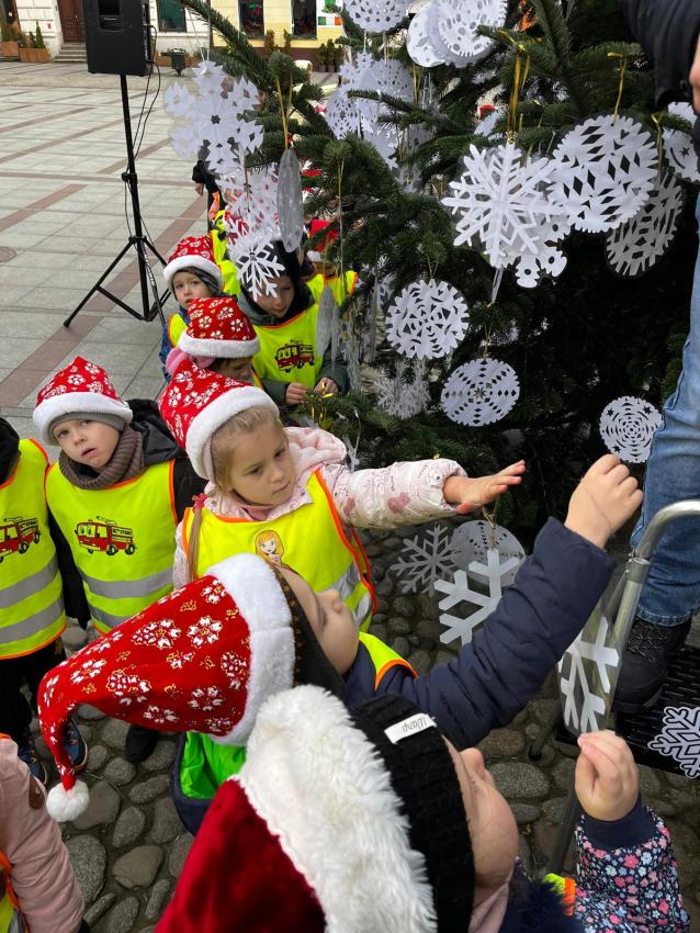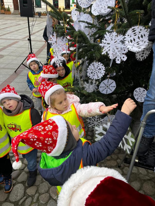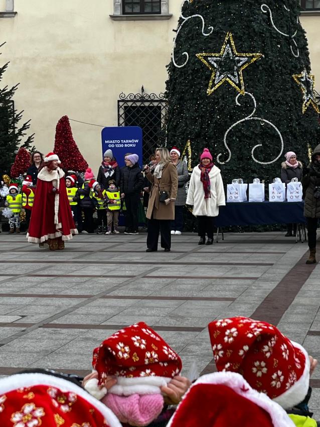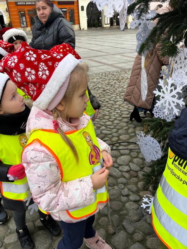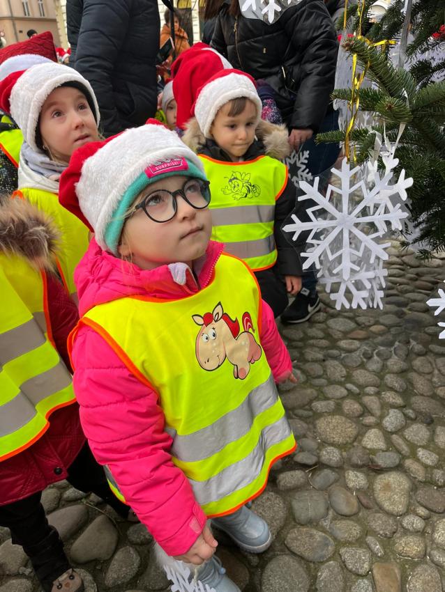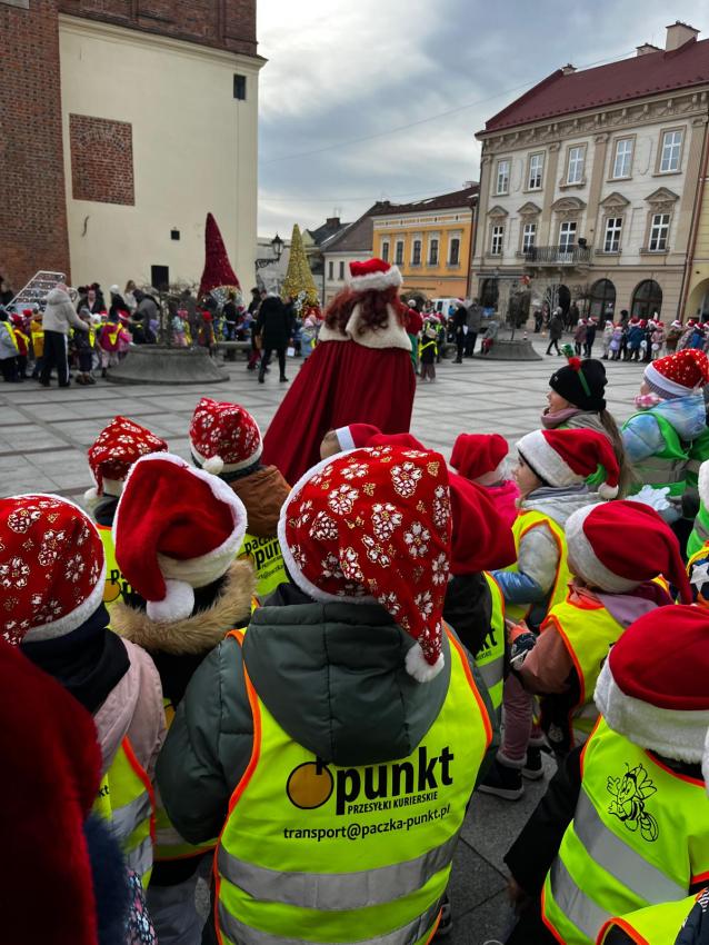 Spotkanie przedszkolaków na tarnowskim Rynku. Dzieci spotkały tam szczególnego gościa. Razem z Mikołajem śpiewaliśmy piosenki, stroiliśmy drzewka choinkowe własnoręcznie wykonanymi śnieżynkami, a na końcu zrobiliśmy sobie pamiątkowe zdjęcie. Był to dla przedszkolaków kolejny, pełen emocji dzień spotkania z Mikołajem. Radość, uśmiech na twarzach dzieci to niezapomniane chwile , które na zawsze pozostaną w pamięci naszych przedszkolaków.