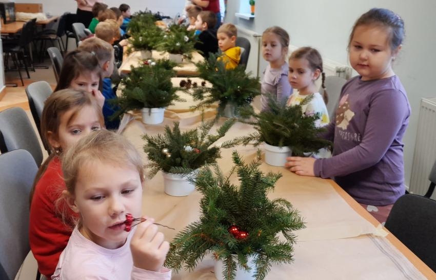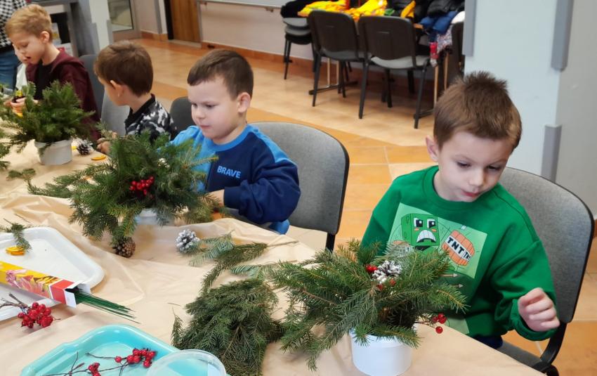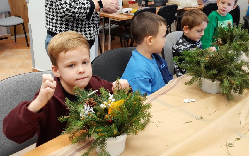 10.12.2025r. był pełen radości i pracy. Dzieci z grupy żyrafki brały udział w warsztatach plastycznych zorganizowanych przez Fundację REPI w Tarnowie. Tematem zajęć był ,,Stroik Bożonarodzeniowy".