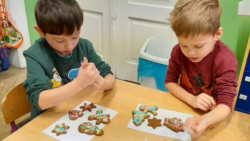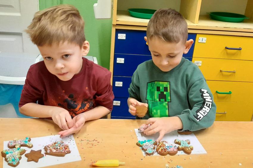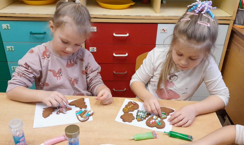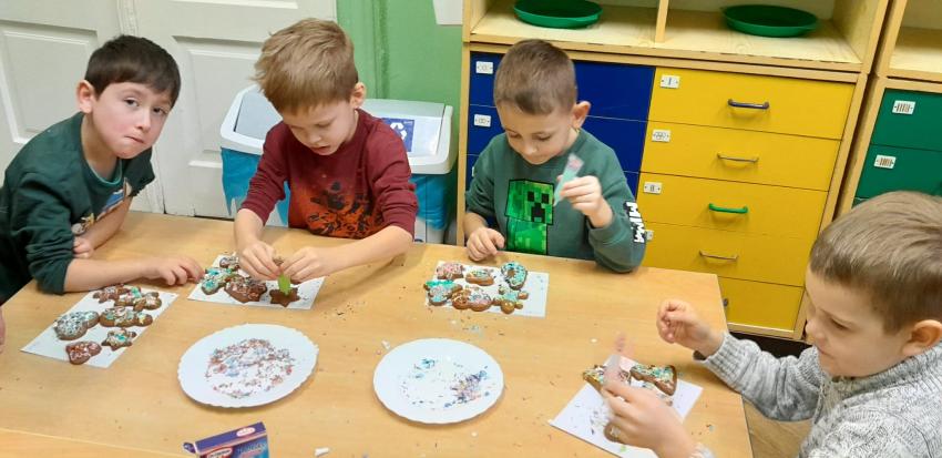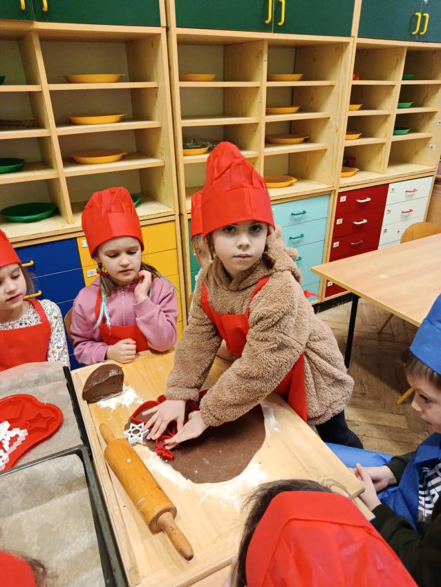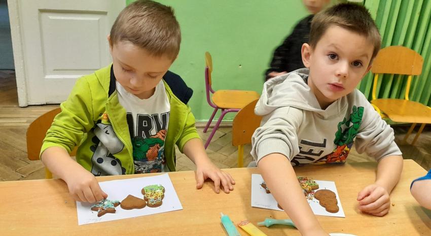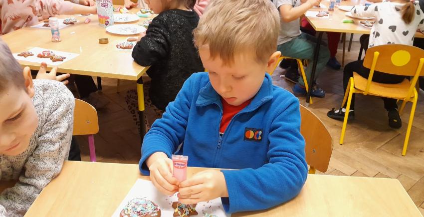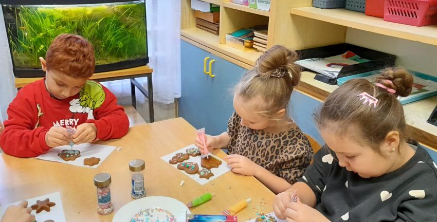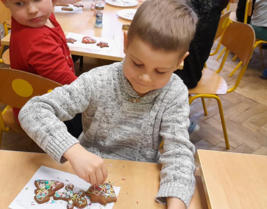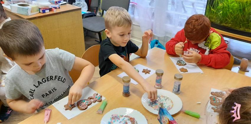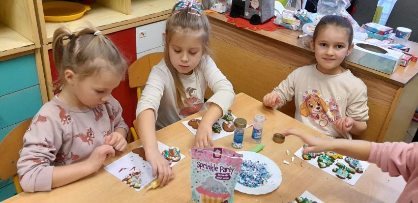 Przedszkolaki uczestniczyły w warsztatach pieczenia świątecznych pierników. To wspaniała przedświąteczna atrakcja integrująca nas wszystkich. Wykrawanie różnych kształtów - choinki, ciasteczka, bałwanki czy gwiazdeczki, ozdabianie kolorowymi lukrami, ozdobami oraz zapach wypiekanych pierników przybliża nas do zbliżających się świąt Bożego Narodzenia i budowania świątecznej atmosfery.