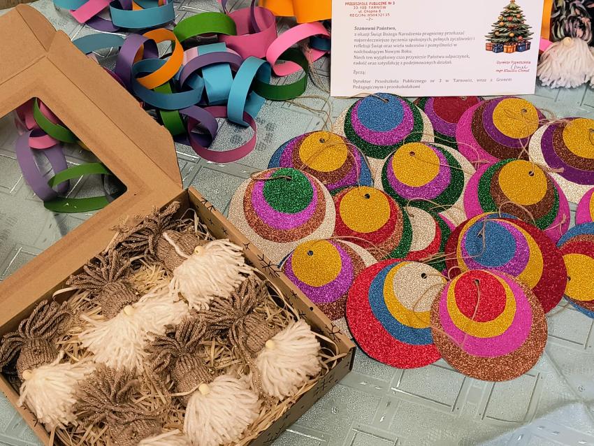 Przedszkolaki przy pomocy wychowawców wykonały ozdoby, które będą ozdabiać choinkę w Hospicjum Via Spei w Tarnowie
