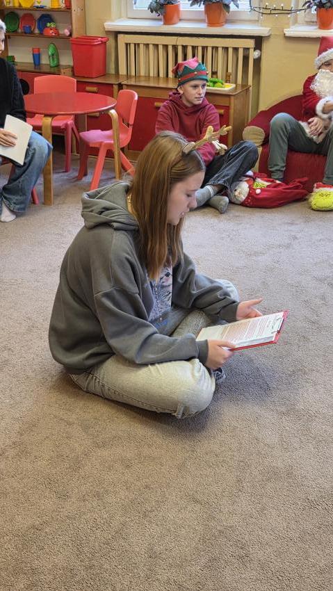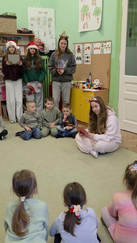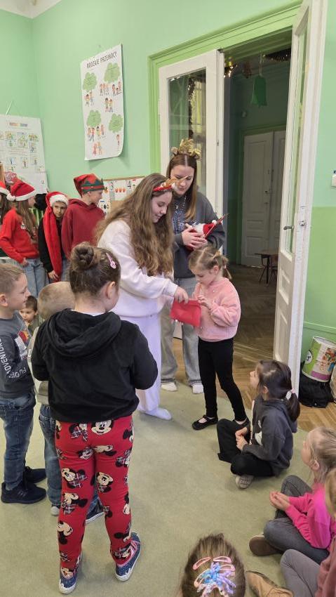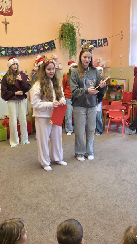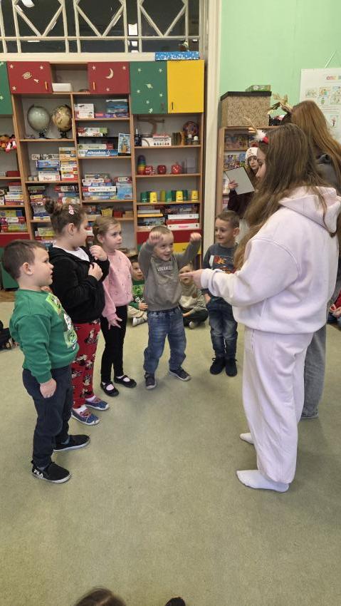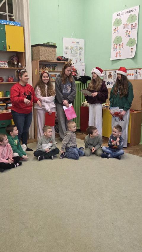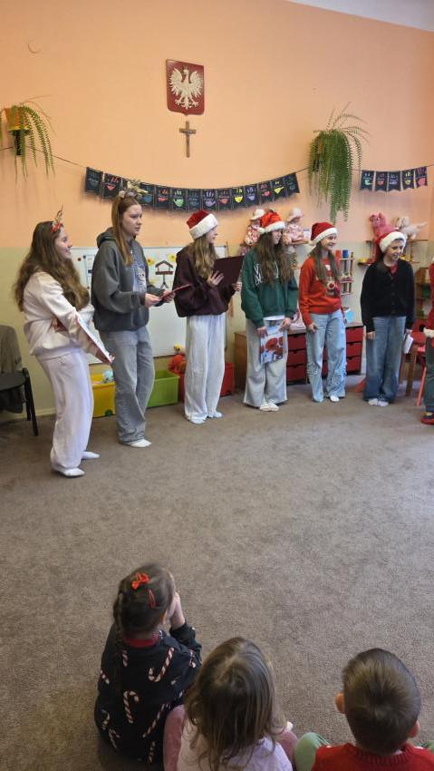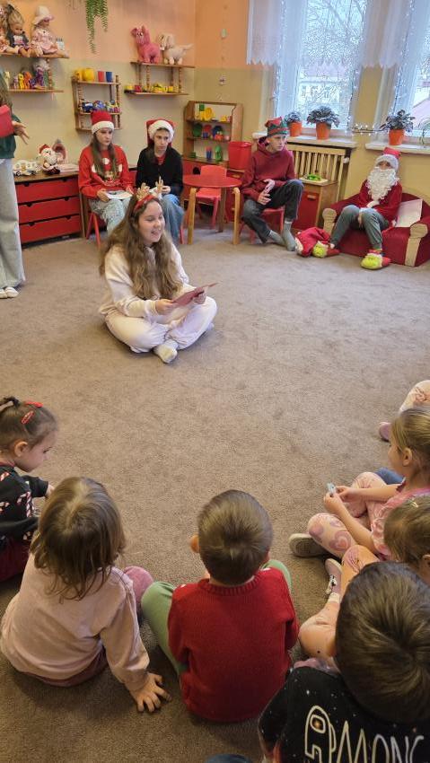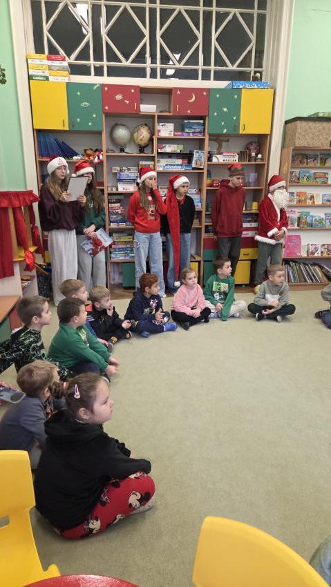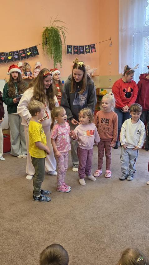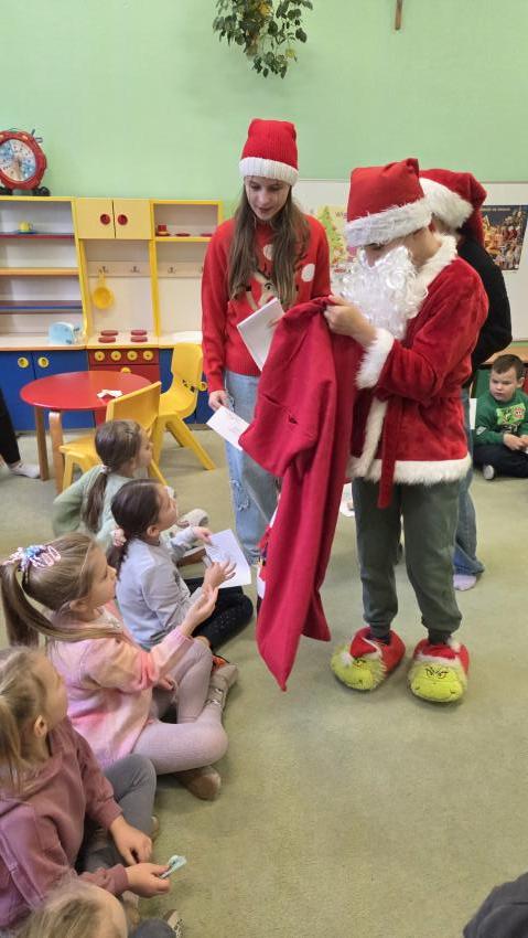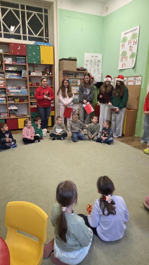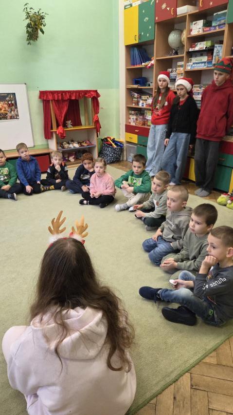 W dniu 18.12.2025r. odwiedzili nas uczniowie ze SIÓDEMKA Niepubliczny Zespół Szkolno-Przedszkolny Stowarzyszenia Siódemka w Tarnowie. Czytali dzieciom opowiadania o tematyce świątecznej. Wspólnie z dziećmi wykonali pracę plastyczną ,,Mikołaj". Dziękujemy za spotkanie.