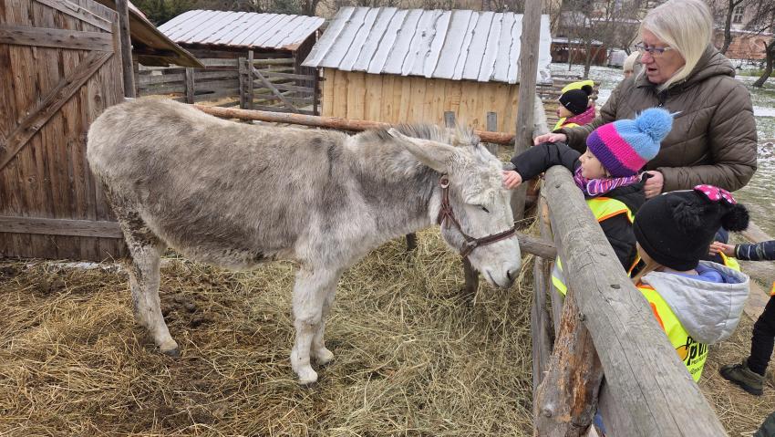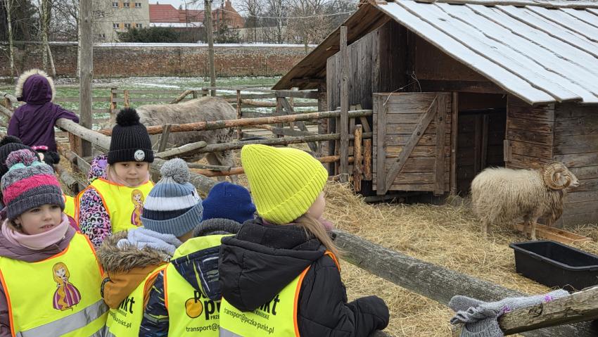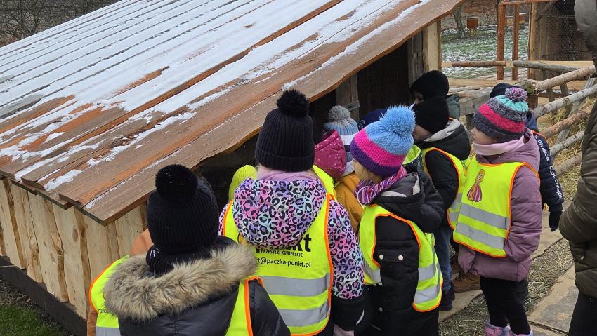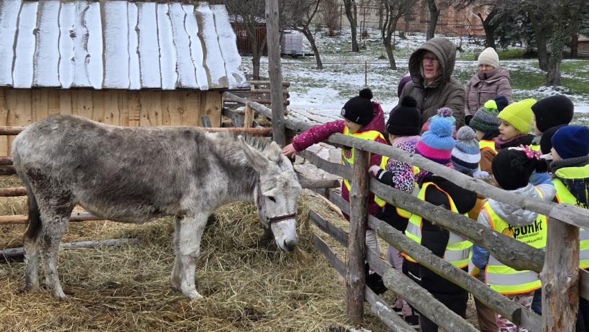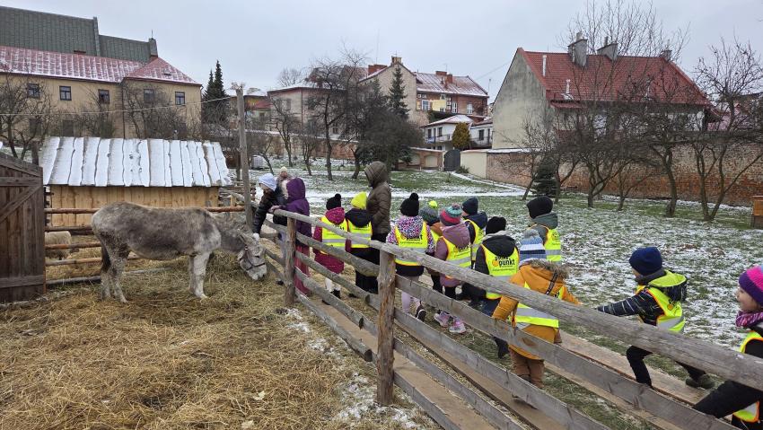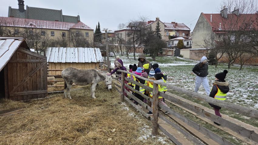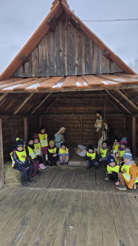 Dnia 29.12.2025r. dzieci z oddziału ,, Żyrafek " odwiedziły żywą szopkę u Ojców Bernardynów.