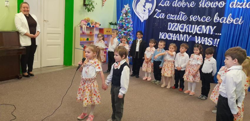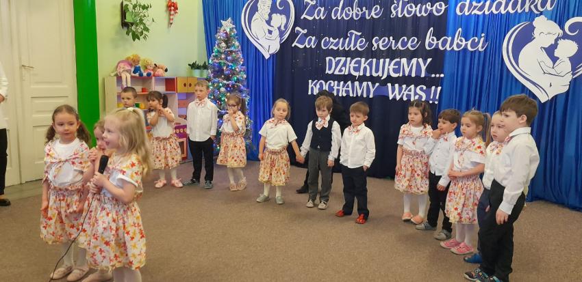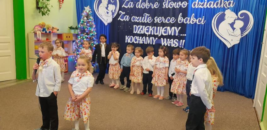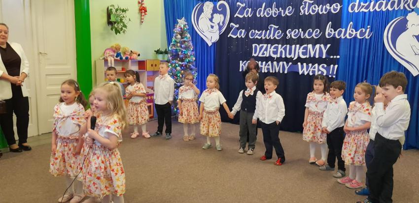 Dzieci przedstawiły repertuar słowno muzyczny, złożyły dziadkom życzenia, były wspólne tańce oraz słodki poczęstunek
