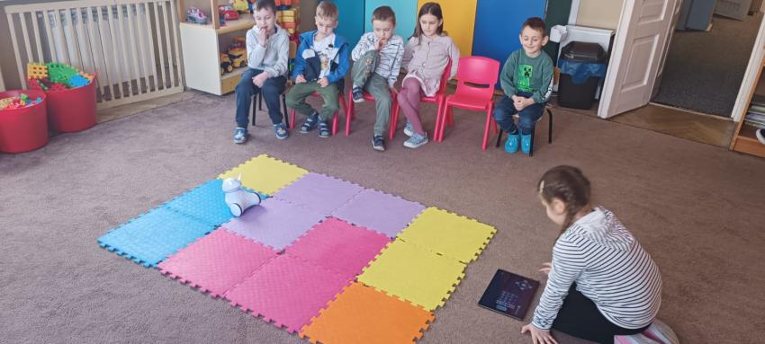 Dziś odbyły się nasze pierwsze zajęcia z programowania dla dzieci! ? Podczas spotkania pracowaliśmy z robotem Photon oraz tabletem, dzięki którym uczniowie stawiali swoje pierwsze kroki w świecie kodowania. Dzieci uczyły się sterować robotem, poznawały podstawowe komendy ruchu oraz ćwiczyły kierowanie Photonem do wyznaczonych przez nauczyciela, kolorowych punktów. Podczas zajęć dzieci z dużym zaangażowaniem kierowały robotem do wskazanych przez nauczyciela kolorowych punktów, ucząc się przy tym precyzyjnego sterowania i współpracy. Każde poprawne dotarcie do wybranego koloru sprawiało uczestnikom wiele radości i zachęcało do podejmowania kolejnych wyzwań.